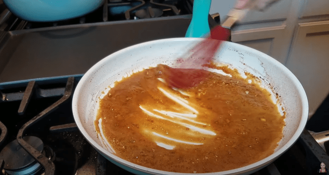 3. ผัดกระเทียมในกระทะ เทโชยุลงไป ผสมน้ำเชื่อม และ ผงกระเทียม ผัดให้น้ำเชื่อมเกิดฟอง (optional: ซื้อซอสจากห้างสรรพสินค้า)